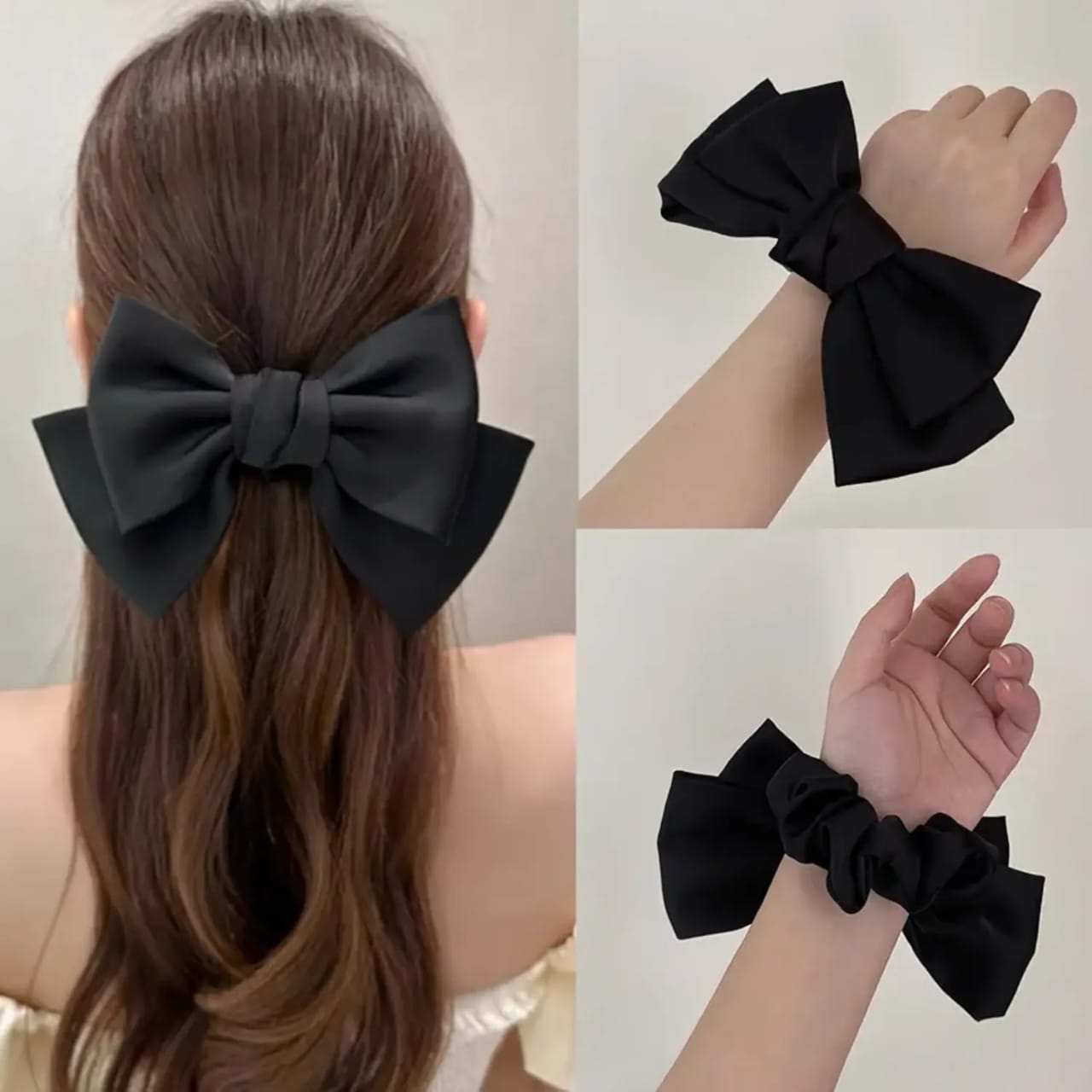 Perfect for ponytails, half-up styles, or even a chic wrist accessory, these scrunchies effortlessly combine function with fashion. The double bow detail adds volume and flair, making it ideal for casual days, festive events, or a cute finishing touch to any outfit.